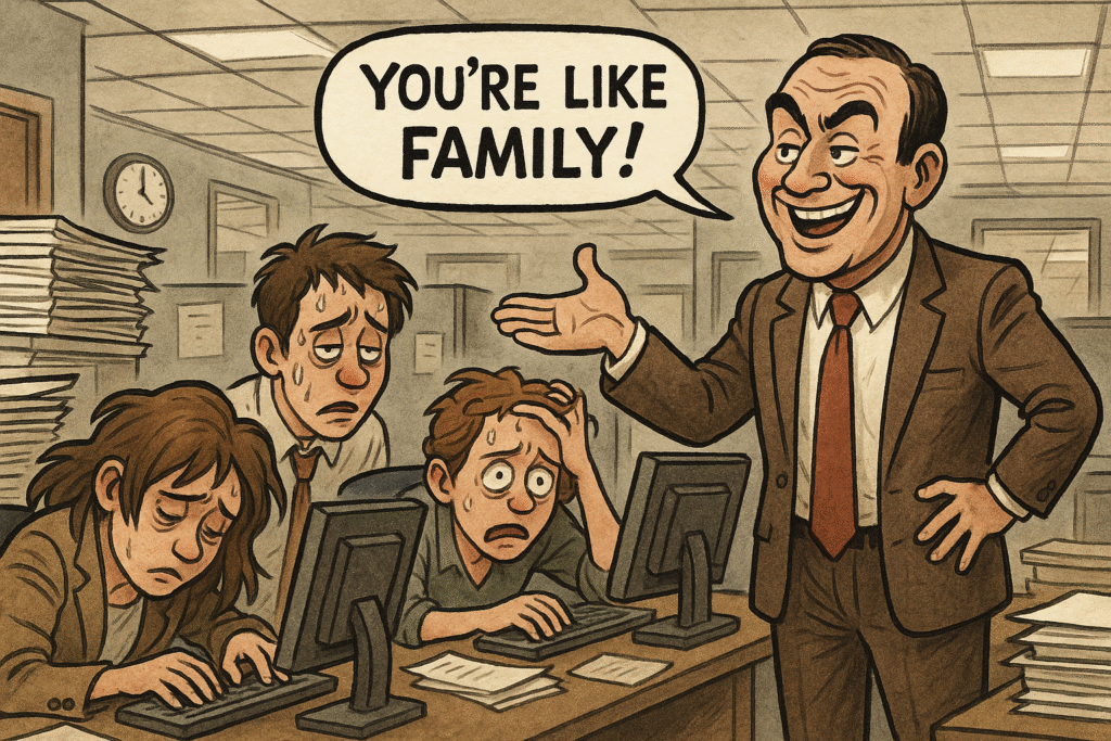 Companies have a number of tricks up their sleeves to enhance their negotiating position. One is to call their employees “family”. However, when there is a business downturn and the company has to choose between keeping excess labour and losing money, that notion of family usually dissipates. Framing workplaces as “families” obscures transactional realities to the detriment of the worker. Only when the employer is compelled to sacrifice do they often reveal the prioritisation of profits over loyalty.